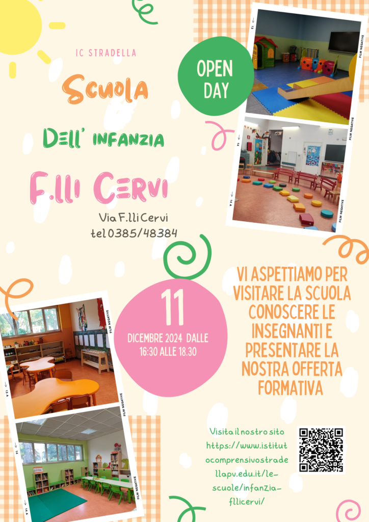 La scuola dell’Infanzia F.lli Cervi di Stradella prende il nome dal viale in cui è ubicata. E’ un edificio ampio su un unico piano con un meraviglioso spazio esterno. Il plesso scolastico ospita 8 sezioni di età eterogenea in aule luminose e ben arredate, oltre a spazi dedicati ai laboratori di musica, pittura, psicomotricità e alla nuovissima biblioteca, inaugurata nel 2018.